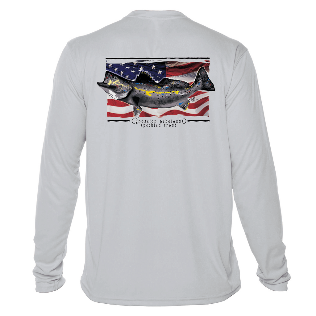 Trout & Flag Long Sleeve Dri-Fit Fishing Shirt