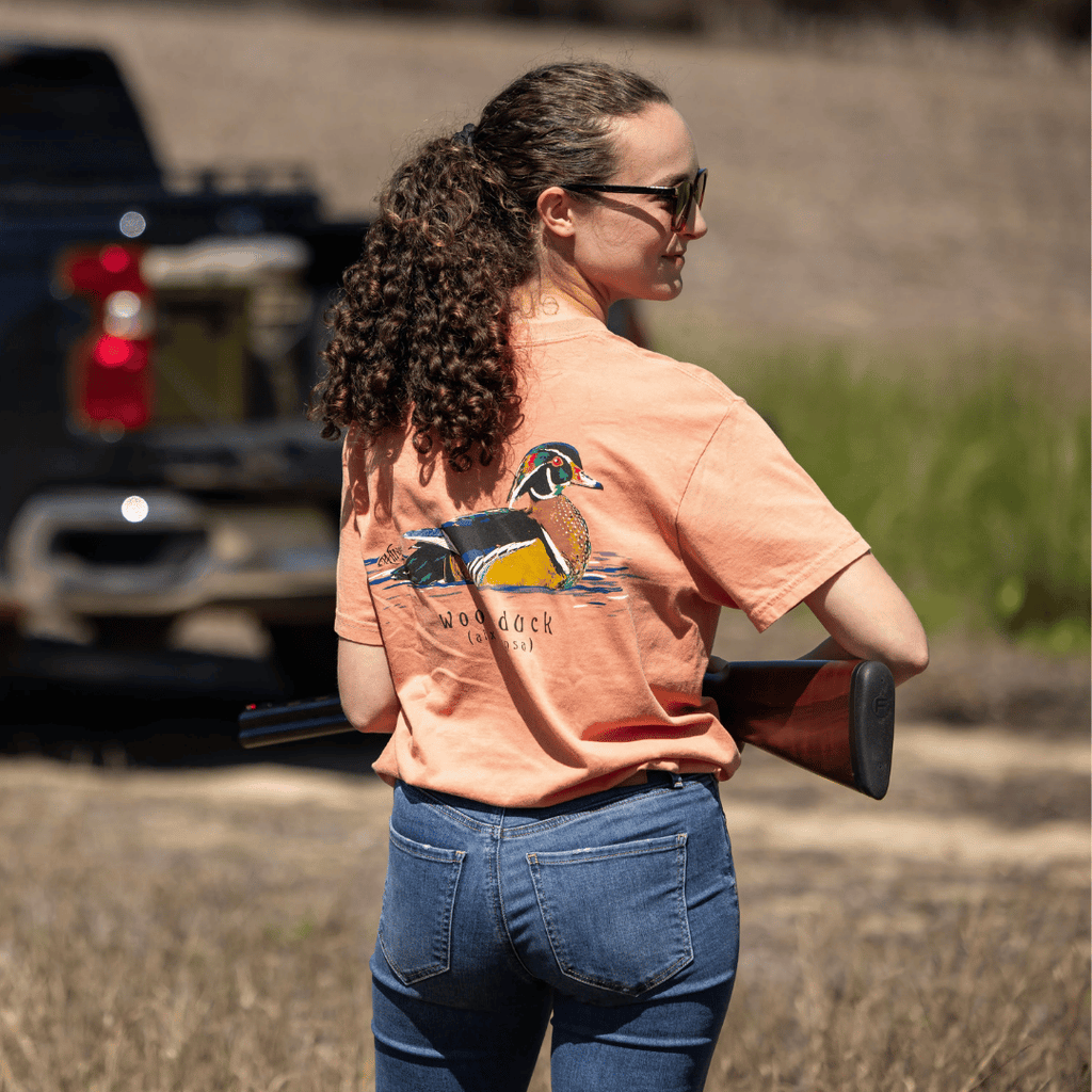 Shop the Wood Duck Comfort Colors® tee in Terracotta, crafted from 100% ring-spun cotton for a soft, comfortable, lived-in feel. This preshrunk, soft-washed, garment-dyed t-shirt features double-needle stitched sleeves and bottom hem, plus twill-taped shoulders for lasting quality. Part of our Wildlife collection, the detailed wood duck design showcases rich green, brown and black - perfect for hunters, outdoor enthusiasts, and anyone who loves nature-inspired style.